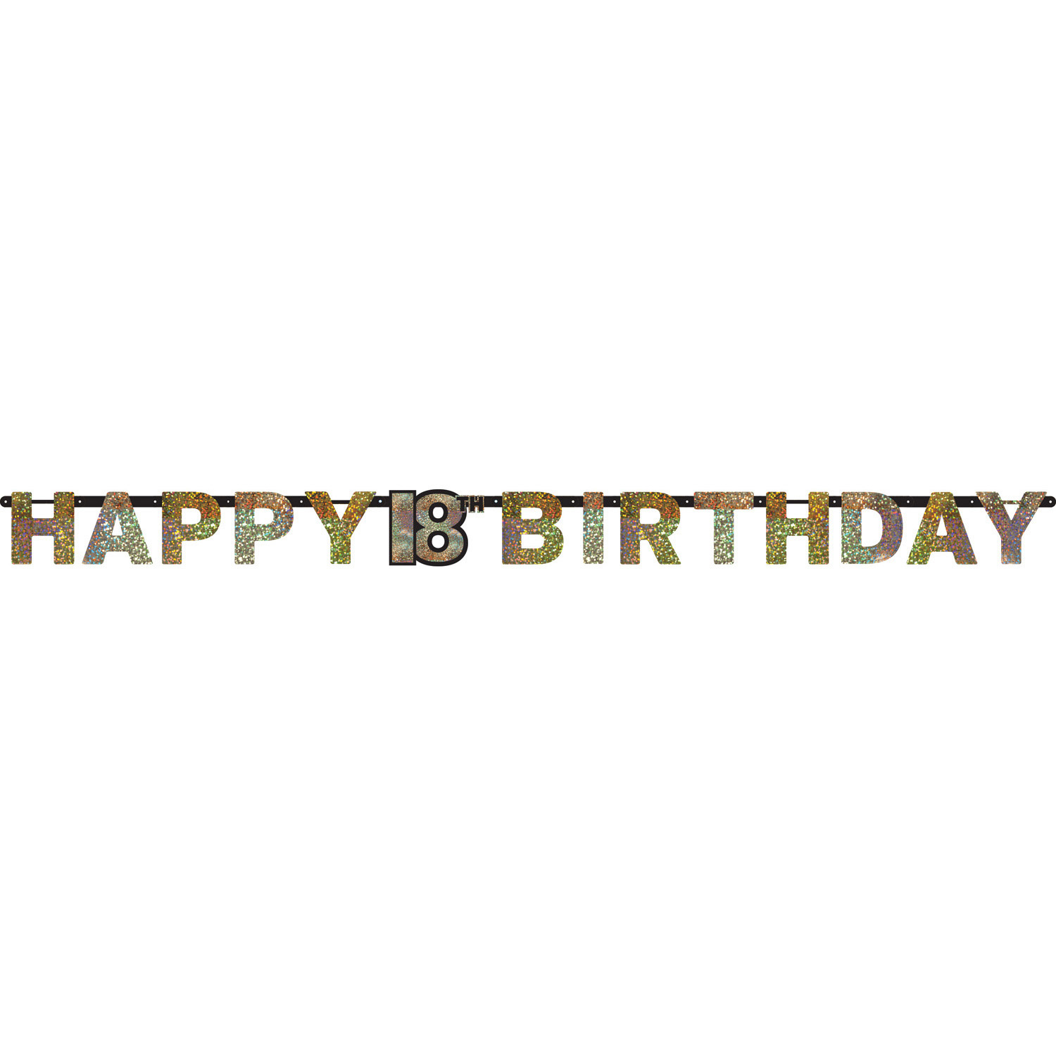 - Letterbanner 18 Jaar Glitter Goud- Lengte koord: ± 213cm- Hoogte letters: ± 16cm- Materiaal: Karton
