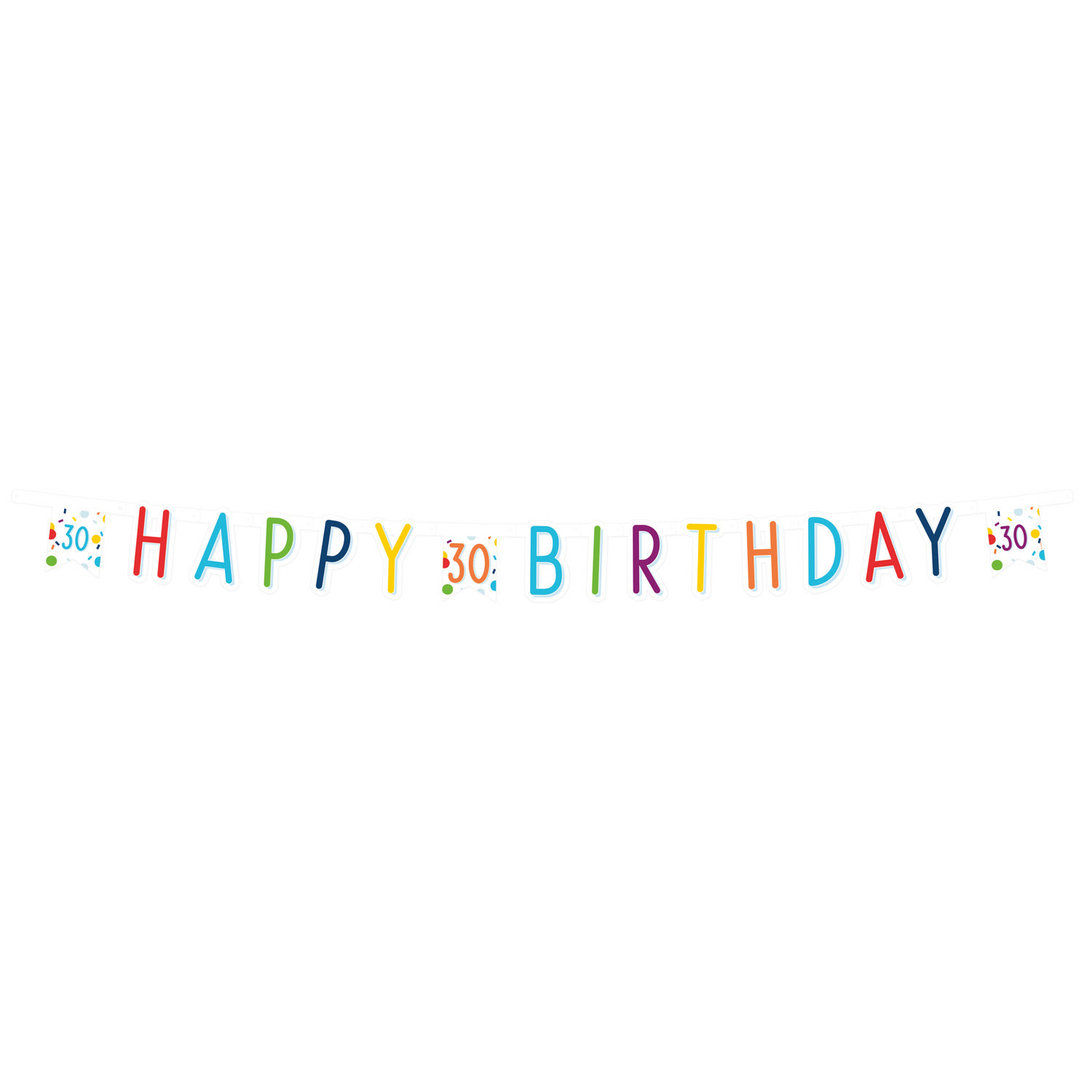 - Letterbanner 30 Jaar Happy Birthday Confetti- Grootte: 180 x 13,8 cm- Materiaal: Karton