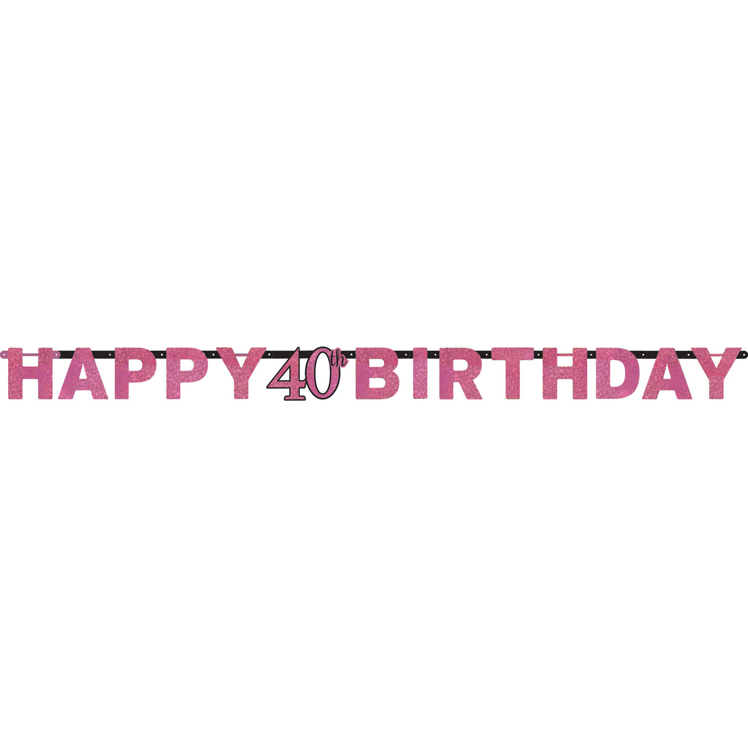 - Letterbanner 40 Jaar Sparkling Roze- Lengte koord: ± 213cm- Hoogte letters: ± 16cm- Materiaal: Karton