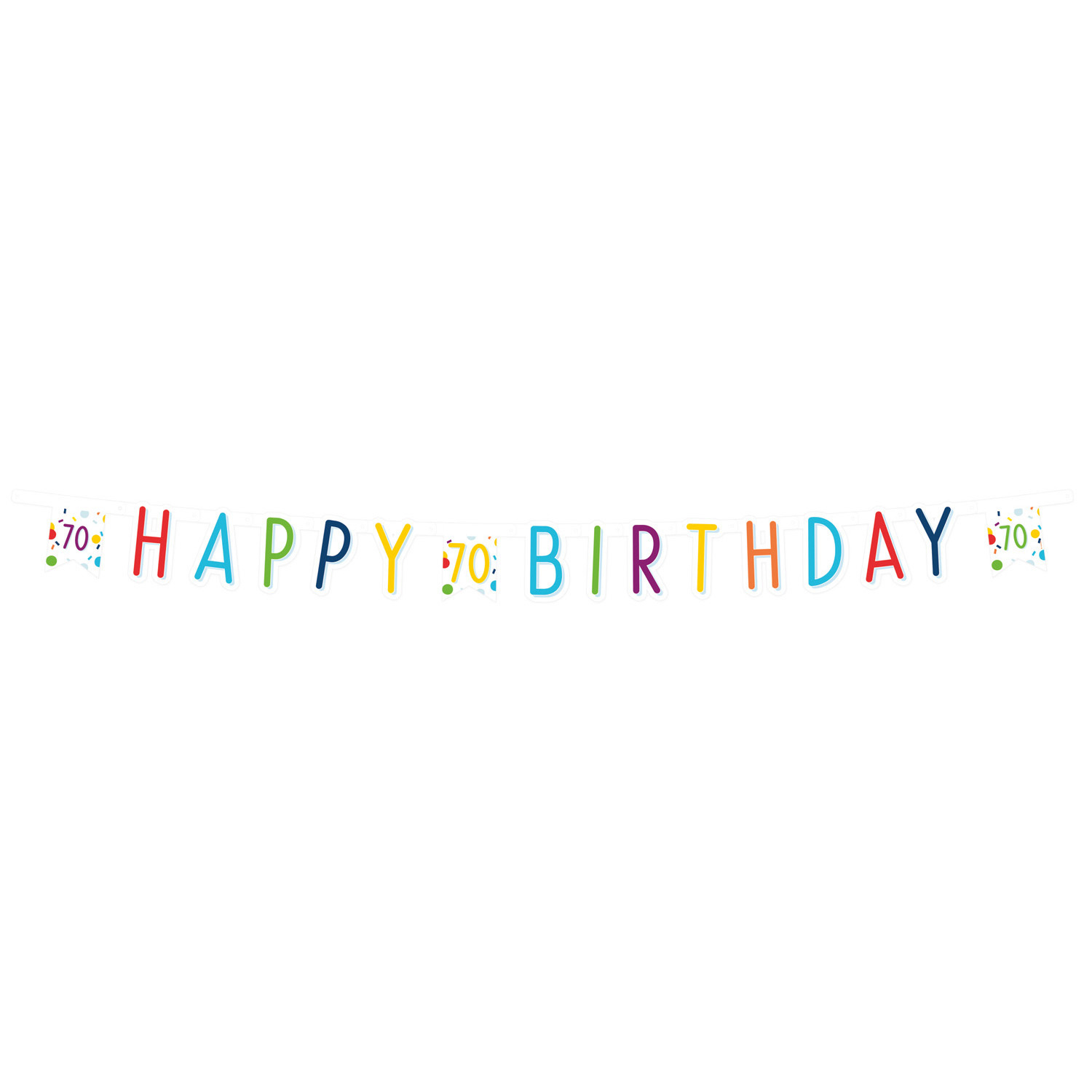 - Letterbanner 70 Jaar Happy Birthday Confetti- Afmetingen: 180 x 13,8cm- Materiaal: Papier