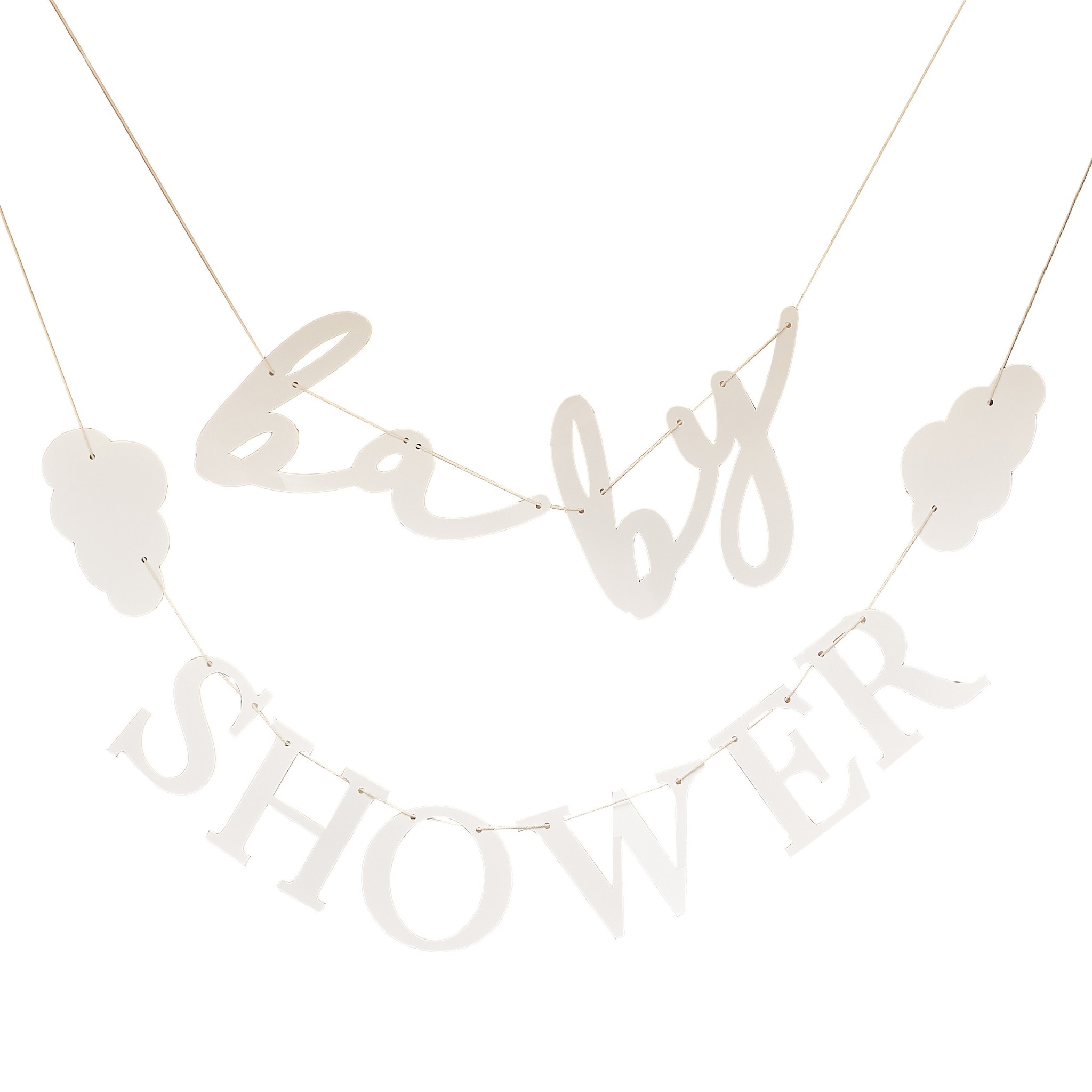- Letterslinger 'Babyshower' Met Wolken - Bevat: 1x 'babyshower'-slinger + 1,5 meter touw- Materiaal: Stevig Karton