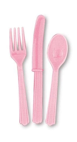 - Lichtroze bestek 18 stuks assorti- Inhoud: 6x lepel, 6x vork, 6x mes- Materiaal plastic