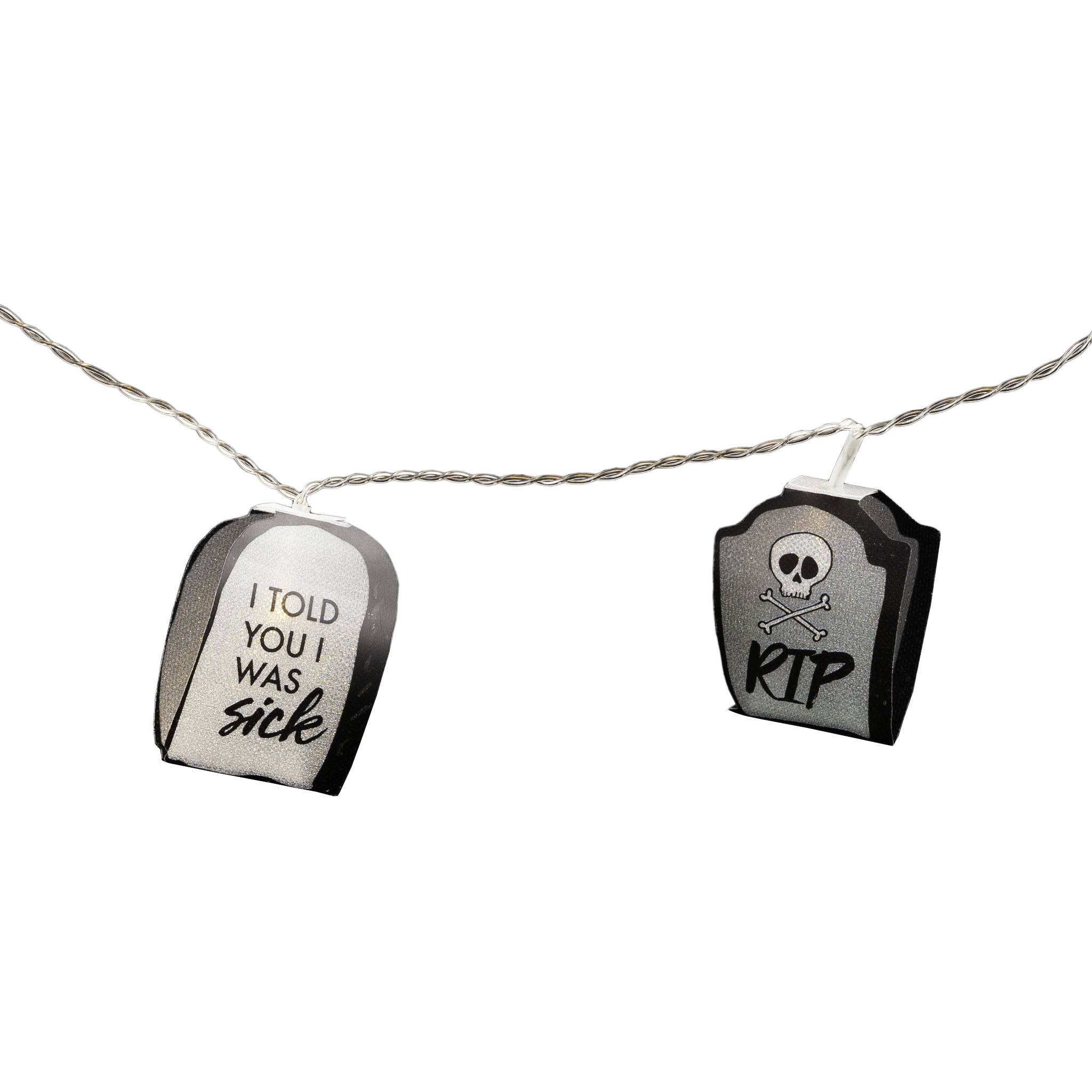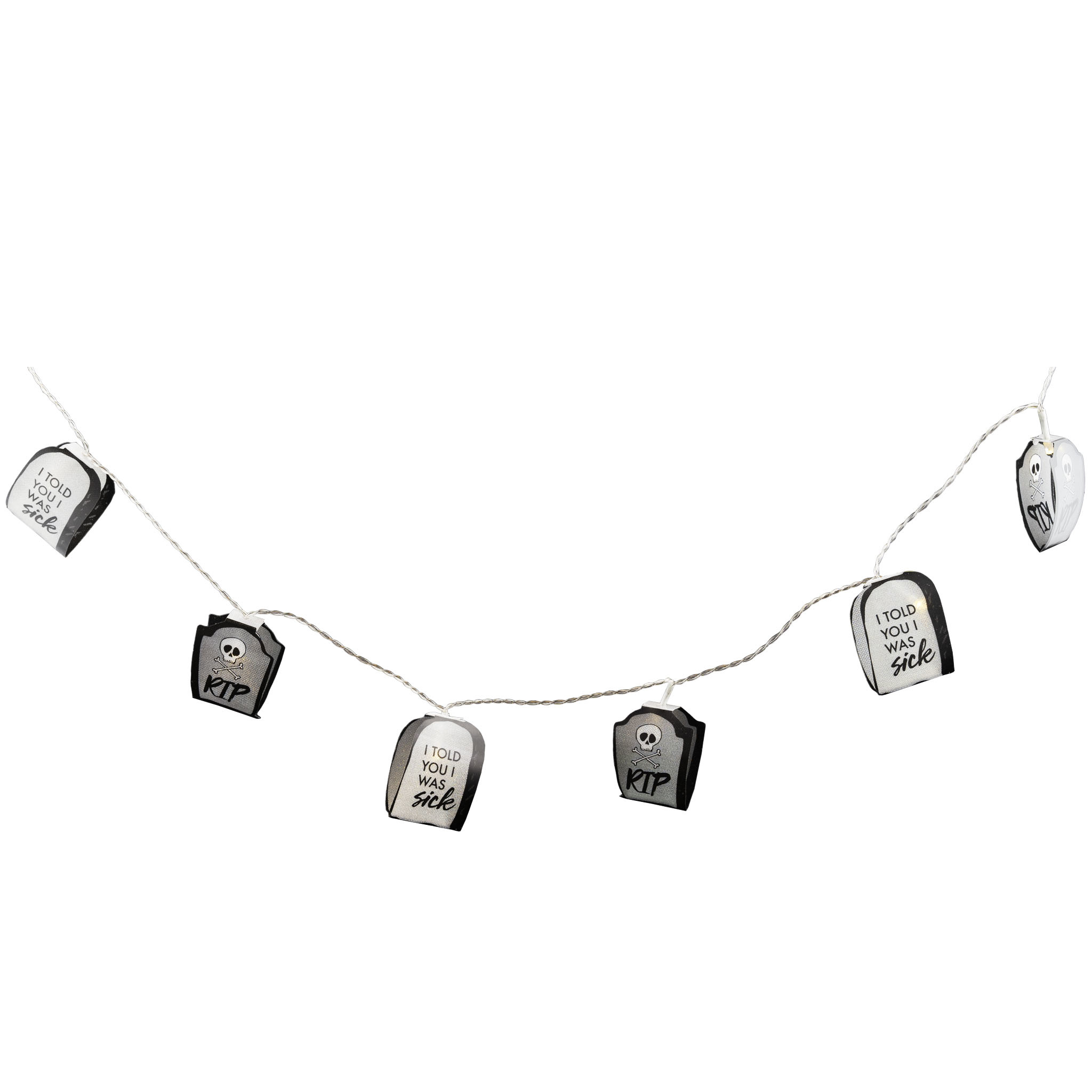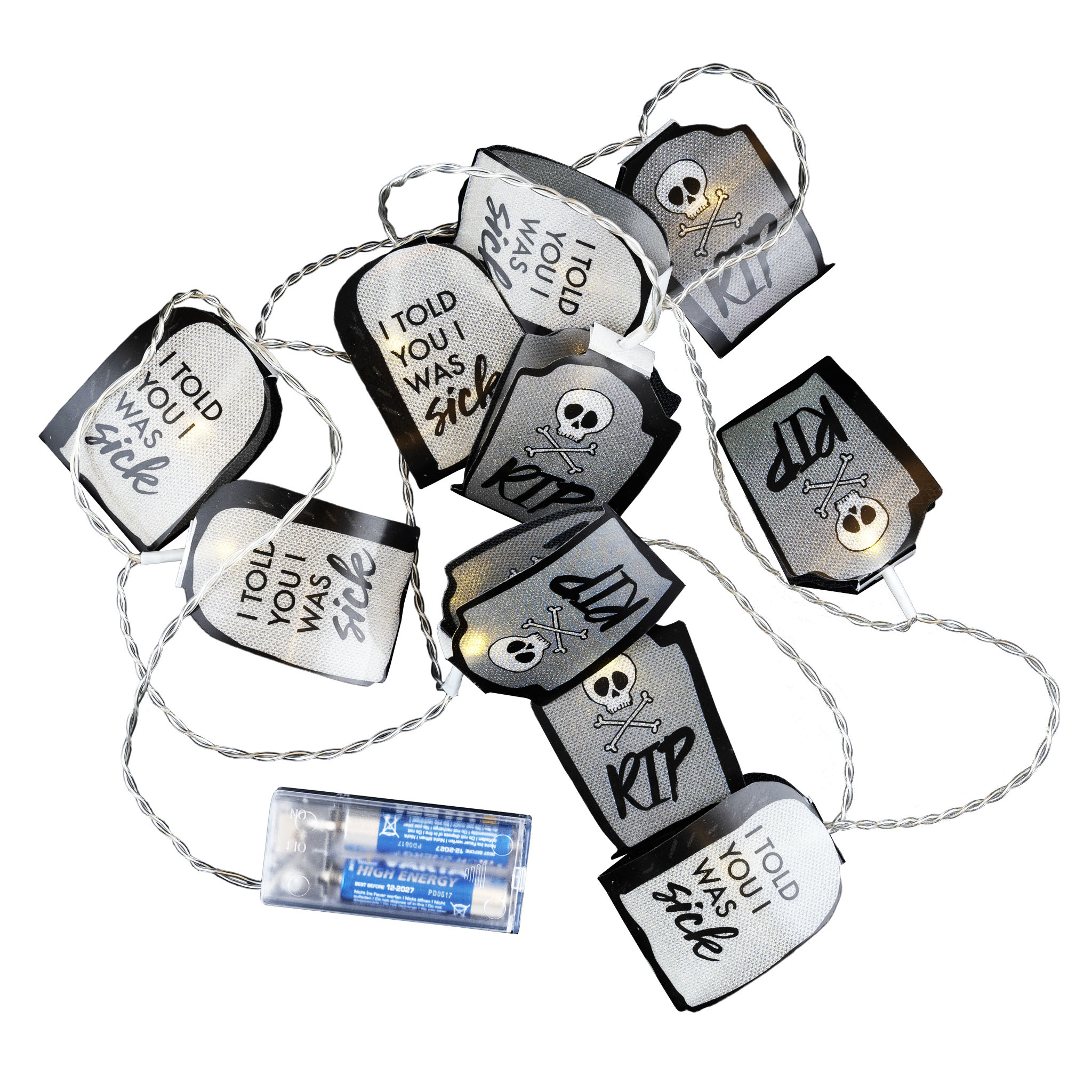 - Lichtslinger met 10 grafstenen- Soort Batterijen: AA (2 stuks)- Batterijen niet inbegrepen