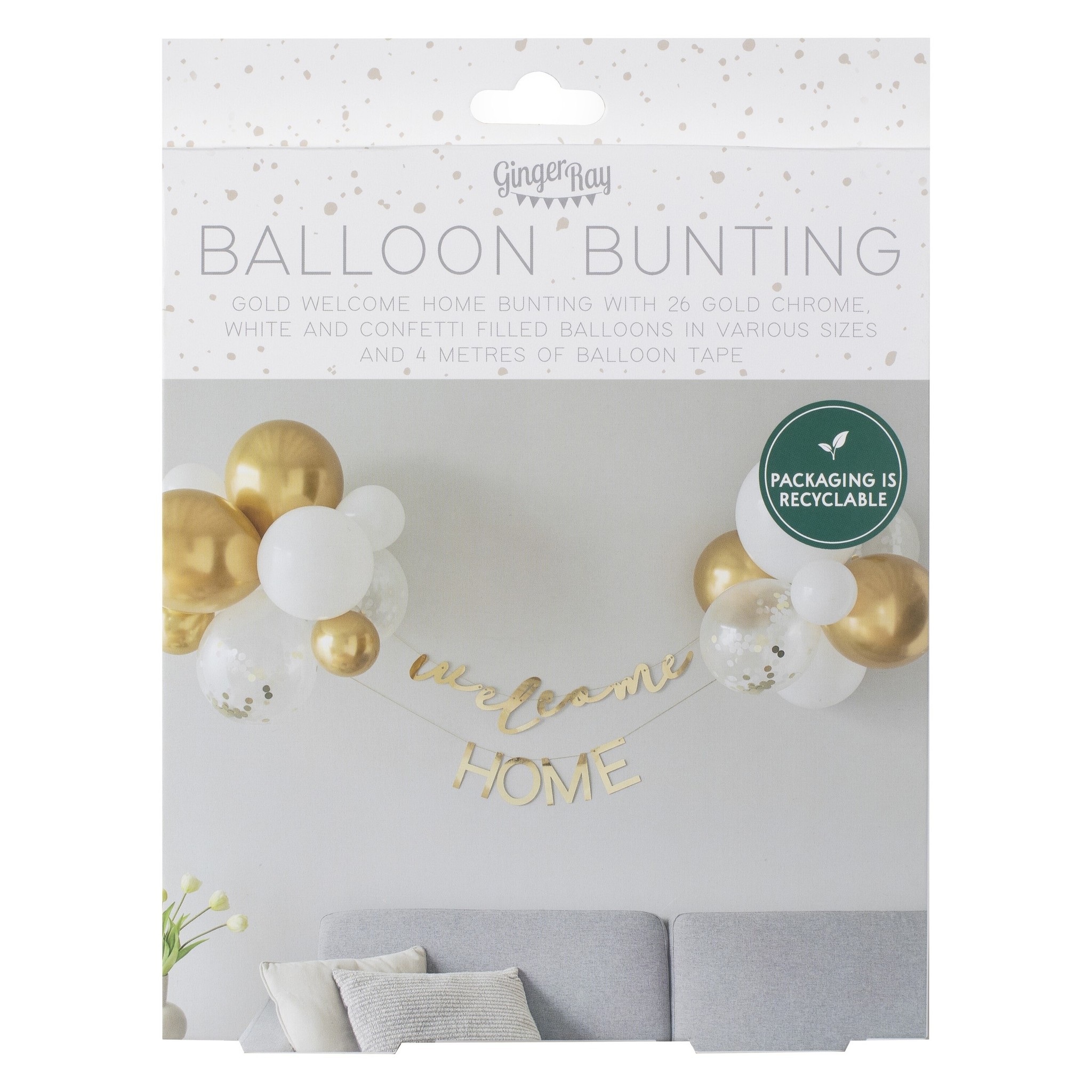 - 2 gouden letterslingers van elk 1,5 meter 'welcome' en 'home'