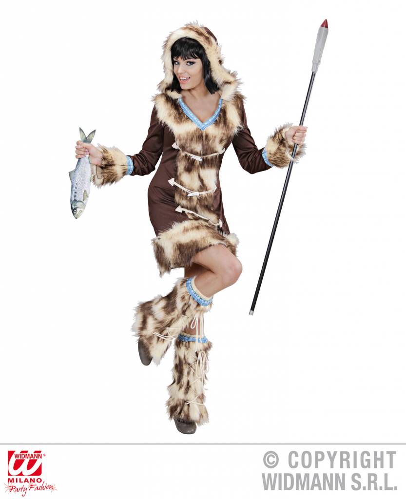 -Luxe Eskimo Meisje Aikaa Kostuum bestaande uit: Jurk met Kap, Beenwarmers