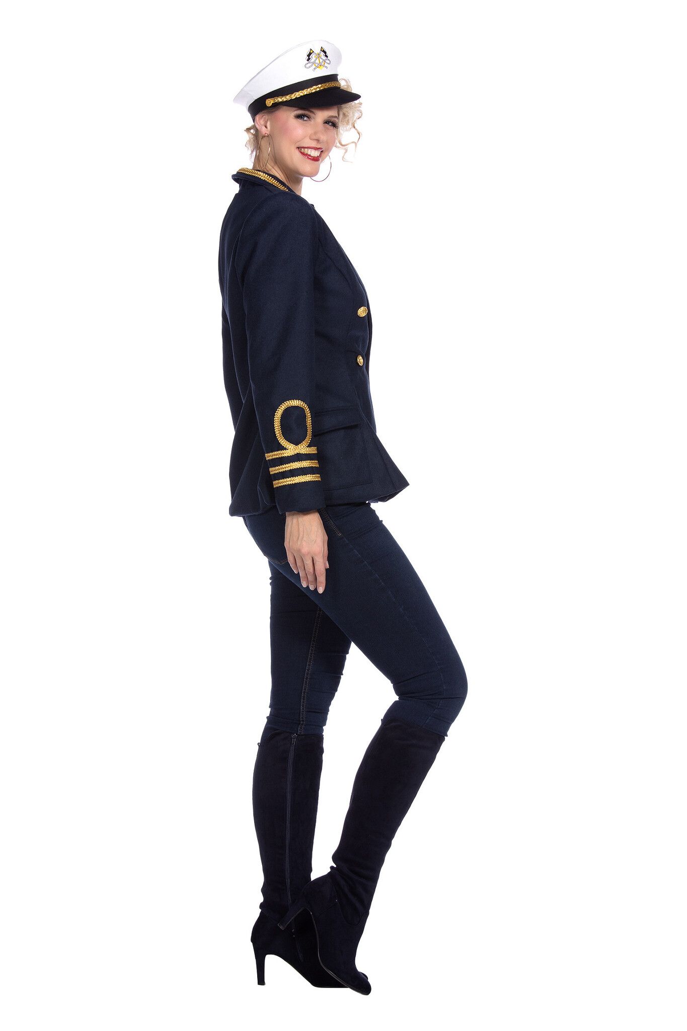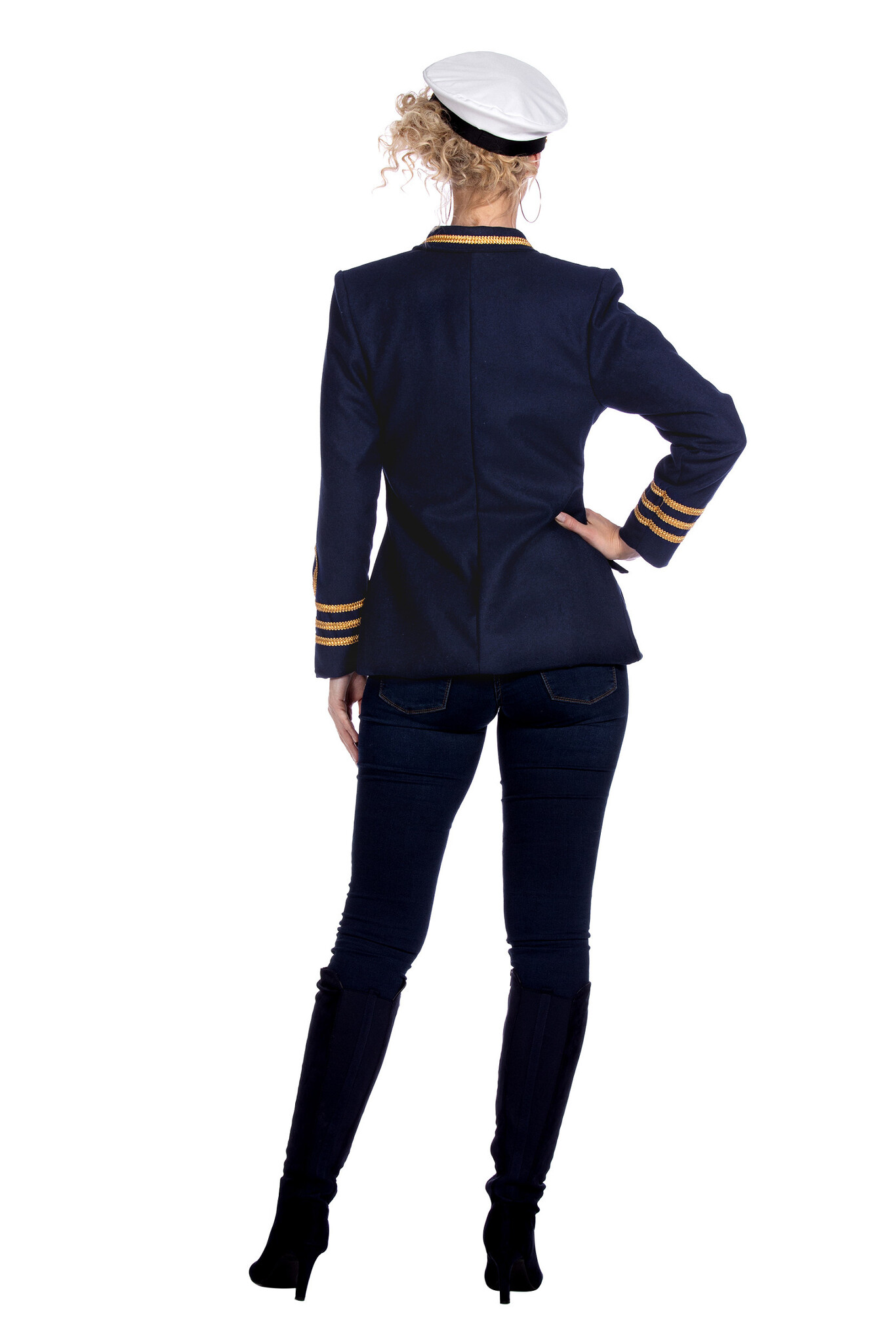 Luxe kapiteinsjasje DamesMateriaal 100% polyesterMet deze kapiteinsjas ben je helemaal klaar voor jouw feestje! Deze jas is afgewerkt met gouden knopen, gouden accenten bij de mouwen.