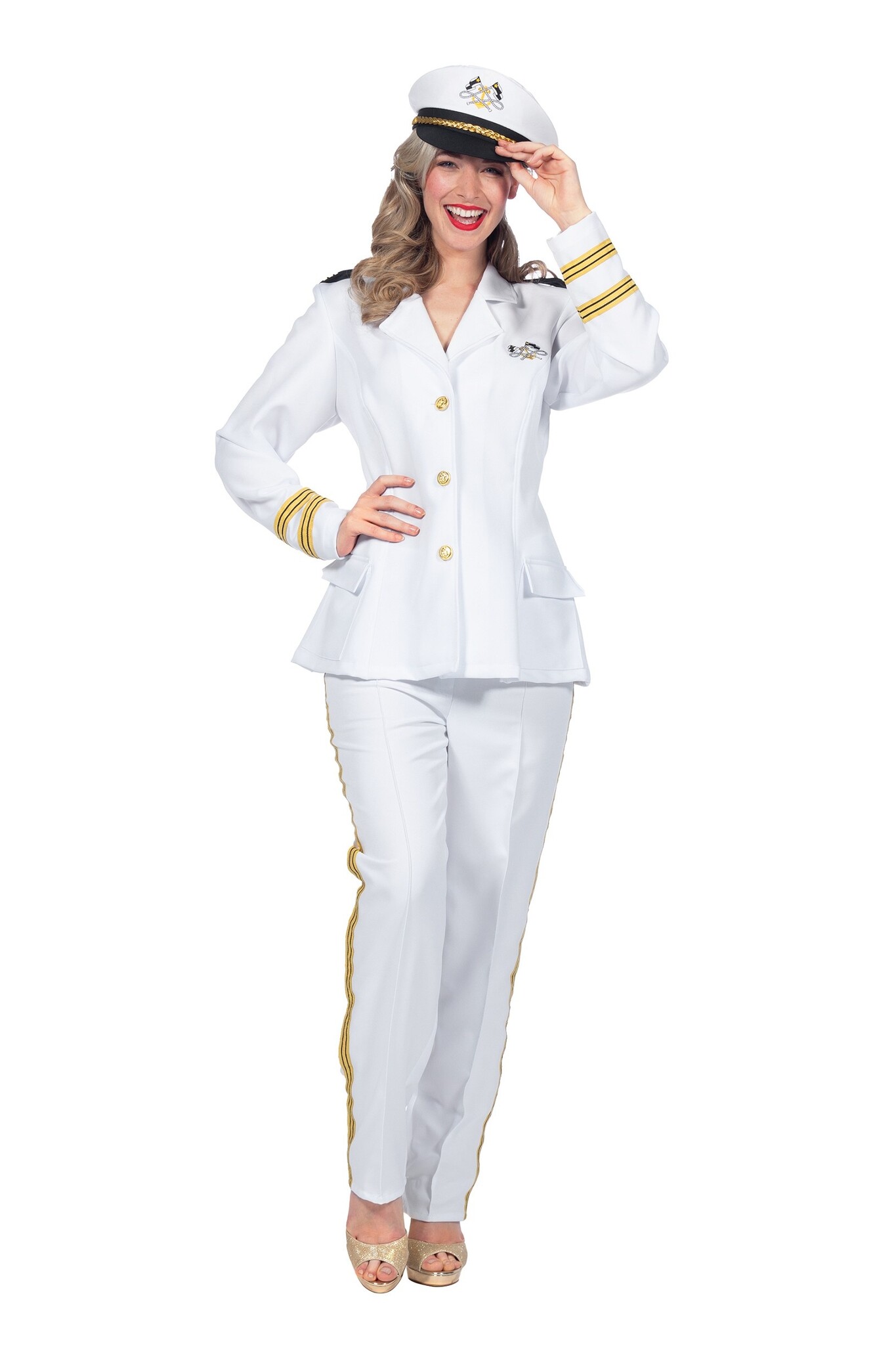 - Dit pak is afgewerkt met gouden knopen, epauletten en goude accenten bij de mouwen.