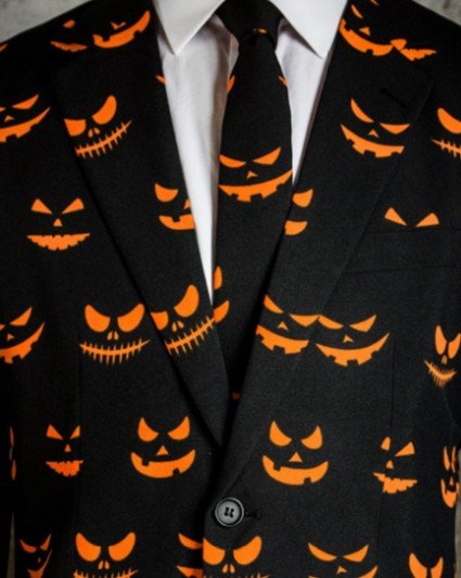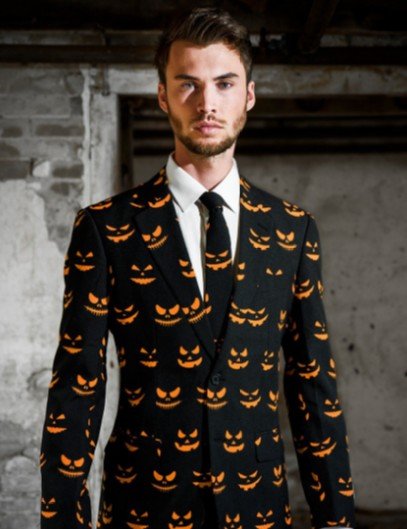 Maatpak Halloween Pompoen bestaande uit: Broek, Colbert, Stropdas