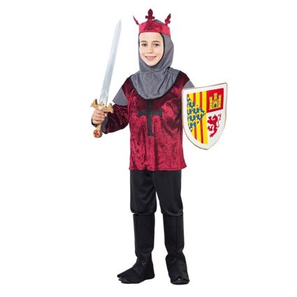 Middeleeuwse Ridderpak kindBestaande uit Kap, shirt, broek en beenkappen.Maten 7-9 en 10-12 jaar7-9 = 122-138 cm10-12 = 139-155 cm