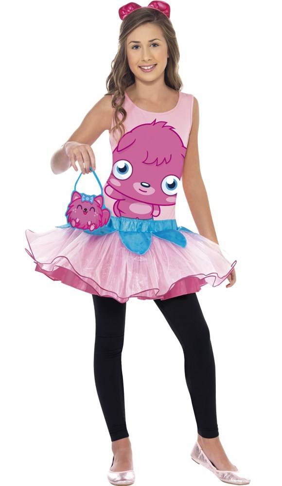 -Moshi Monster Poppet kostuum bestaande uit het jurkje met tutu rokje, de haarband en het Monster Poppet tasje.