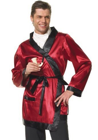 -Mr Hefner Kamerjas rood-Bestaande uit: Bachelor jas, Ceintuur, Pijp-Maat one size