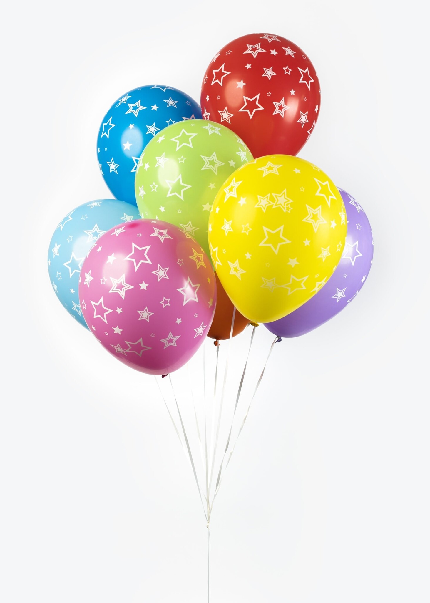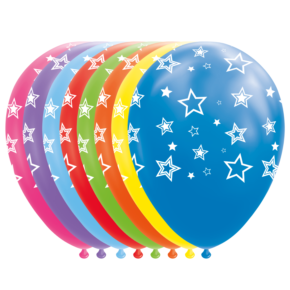 - Multikleur Ballonnen Met Witte Sterren - Bestaande uit: 8 stuks per verpakking - Diameter: ± 30 cm - Inhoud: Leeg (standaard). - Geschikt voor: Helium en lucht - Zweeftijd (helium): 12-14 uur - Materiaal: Latex