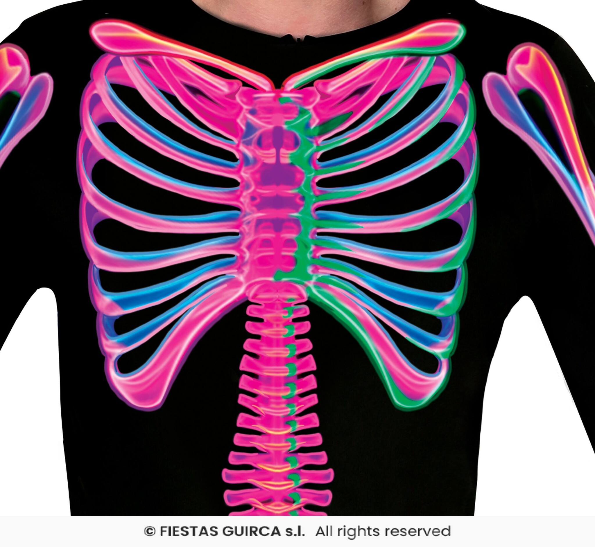 Transformeer jezelf in een opvallend skelet met de Neon Jumpsuit Zwart Skelet Heren! Dit strakke en stretchy kostuum accentueert het hele lichaam met een lichtgevend, neon skeletontwerp dat oplicht in het donker of onder UV-licht. Perfect voor Halloween, festivals of themafeestjes, deze morphsuit van Feestbazaar zorgt ervoor dat je eruitziet als een spectaculair, griezelig neon skelet. Het nauwsluitende materiaal geeft je volledige bewegingsvrijheid terwijl je er mysterieus en indrukwekkend uitziet.