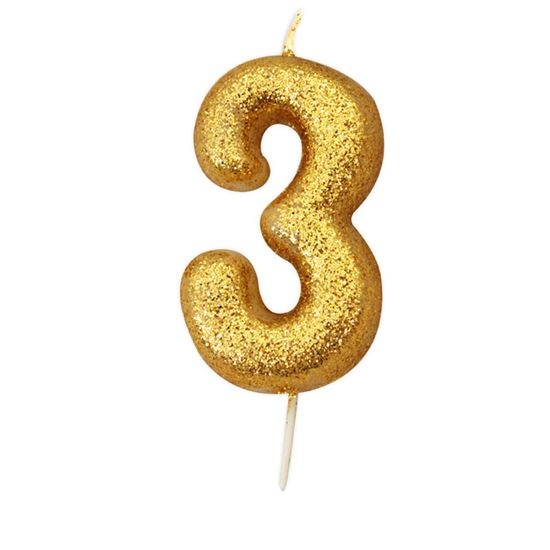 - Nummerkaars '3' Glittergoud- Aantal: 1 kaars per verpakking- Afmetingen: 7cm