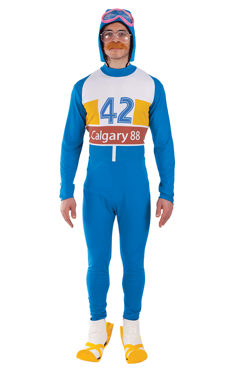 Olympische Skier Kostuum CalgaryBestaat uit een jumpsuit, skibril, helm en ski’s.Maten M/L en XL