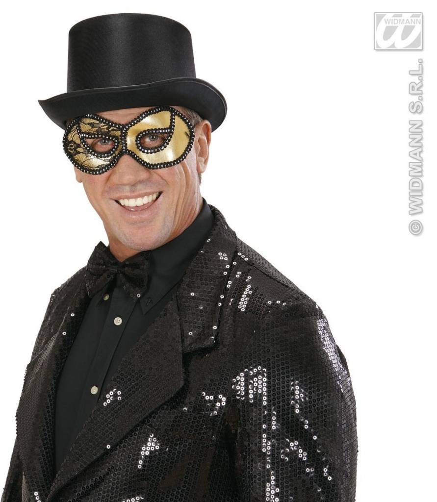 Oogmasker zwart/goud met kant op ogen