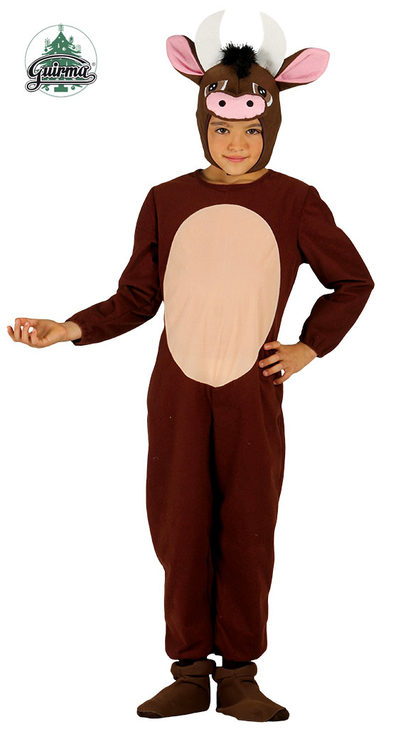 Os kostuum kindBestaande uit Jumpsuit en HoofdstukMaten 3-4, 5-6, 7-9 jaar3-4 = 95-105cm5-6 = 105-115cm7-9 = 115-135cm
