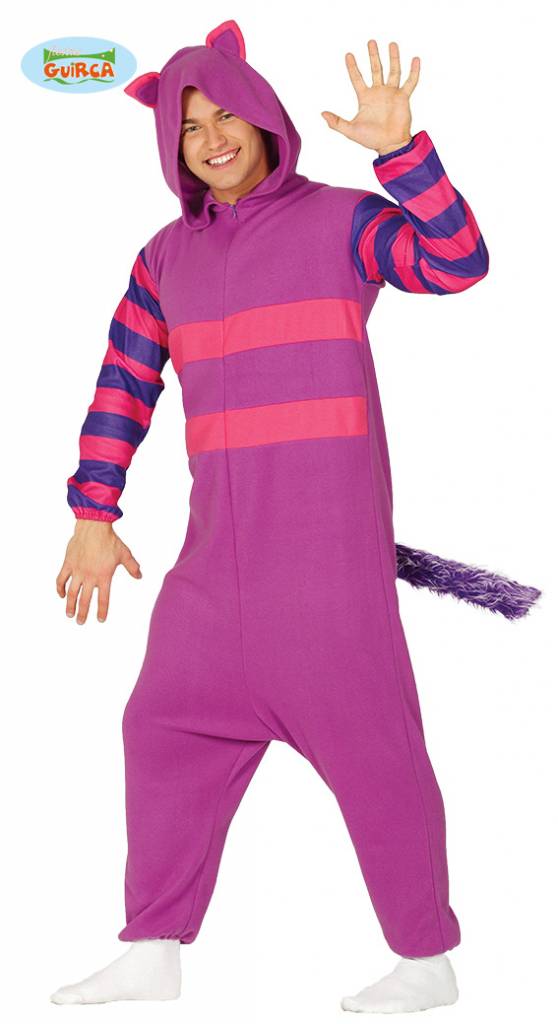 Paars gestreepte kat kostuumBeschikbare maat: L Dit product bevat: Jumpsuit met kap en staart