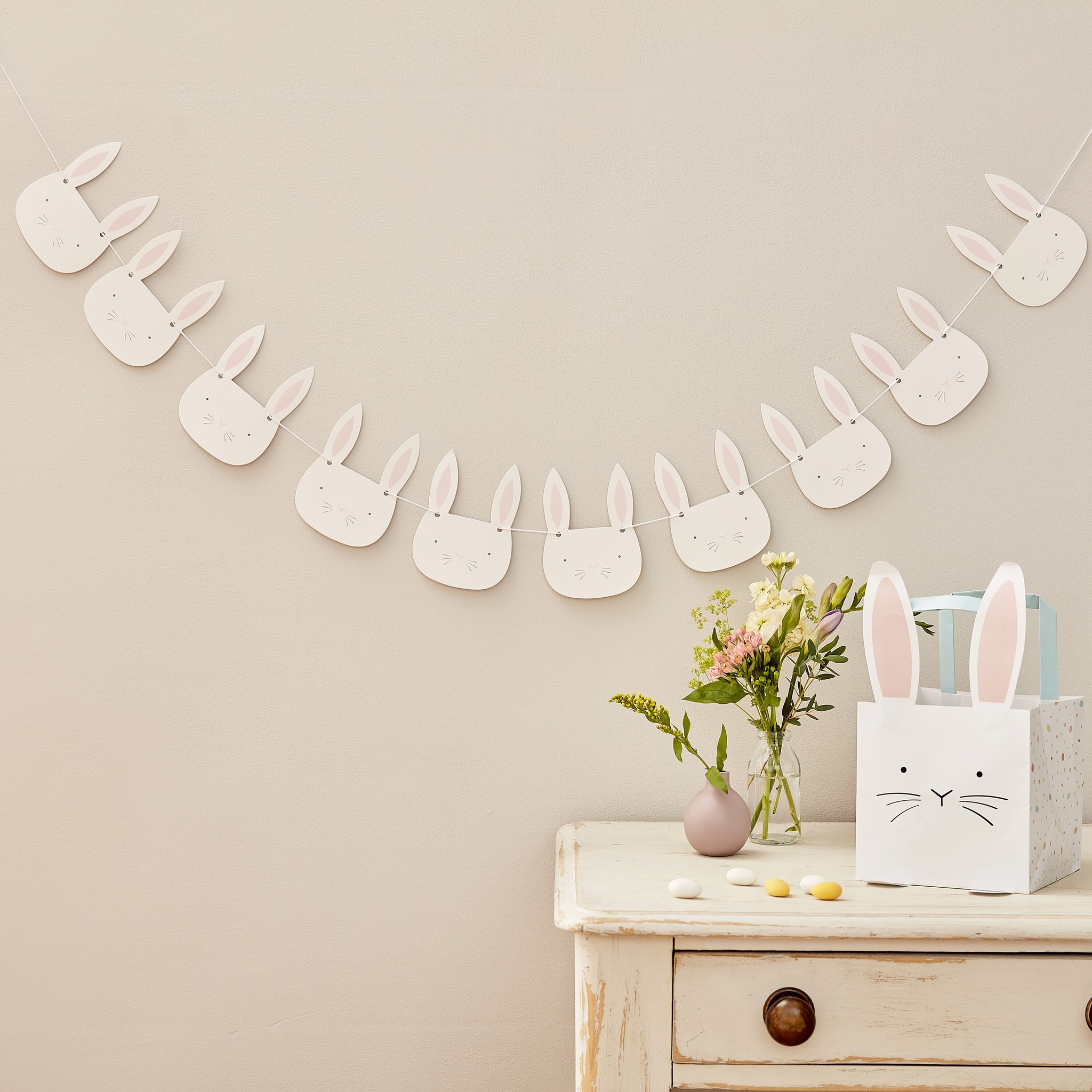 - Paasslinger Konijntje Roze/Wit- Afmeting: 2 meter- Bevat: 10 konijnenvlaggen aan 2 meter wit touw- Materiaal: Stevig KartonEenvoudig zelf in elkaar te zetten!