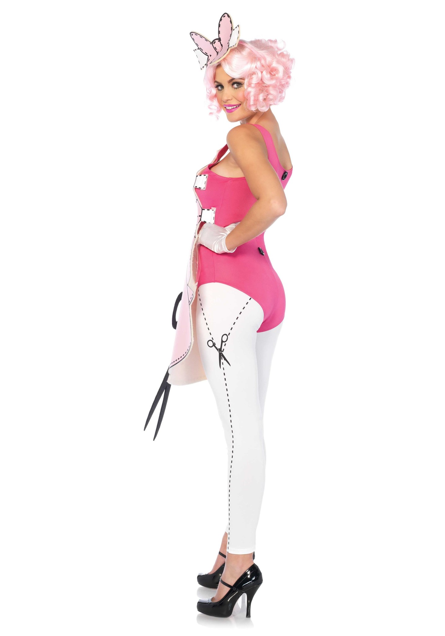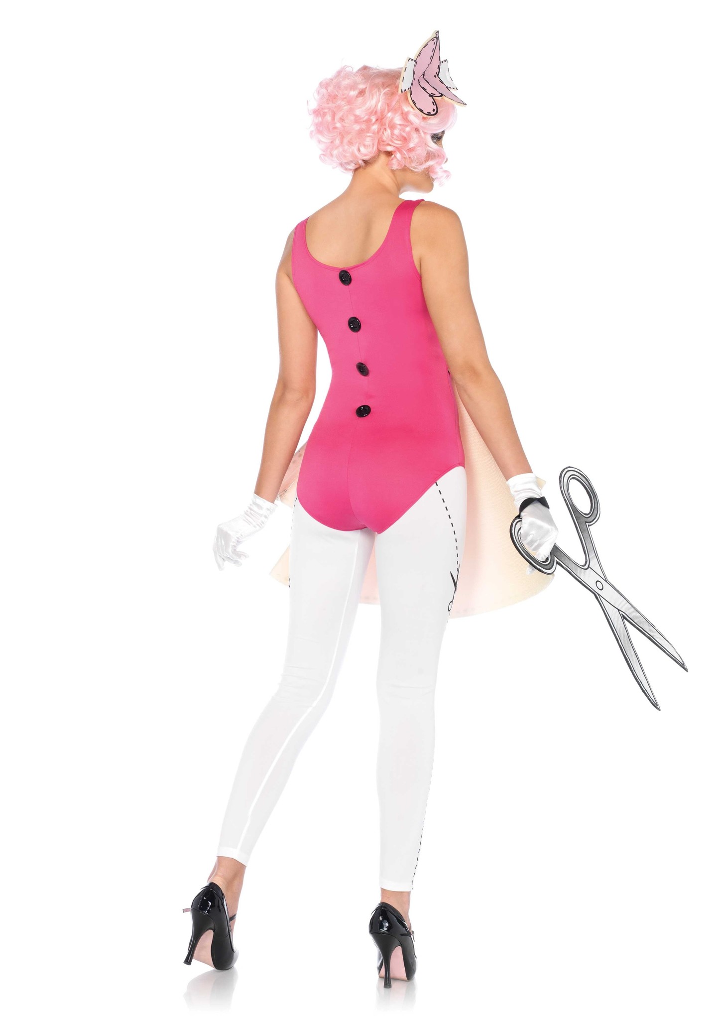 Leg Avenue 5-delig 'Pretty Paper Doll' papieren pop kostuum bestaande uit een romper, uitknip poppenjurk van schuim met klittenband, legging, grote schaar van schuim met klittenband en een haarstrik met band.