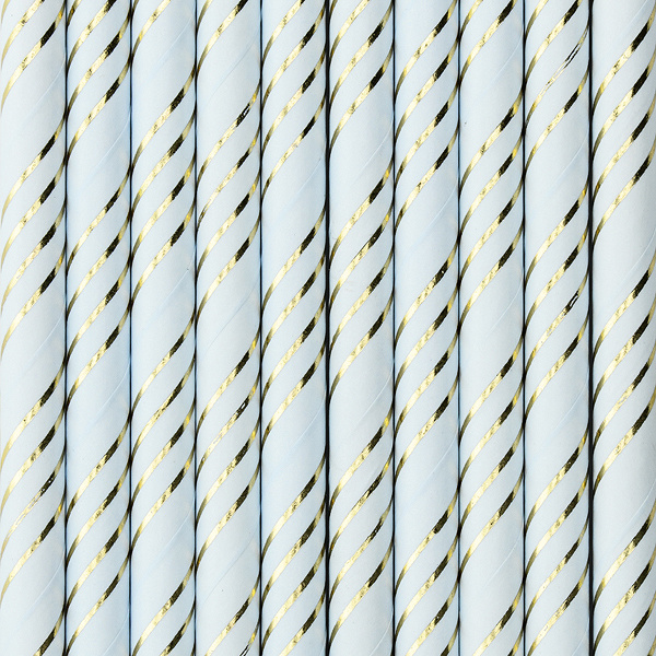 Papieren Rietjes Lichtblauw/Goud (10st)