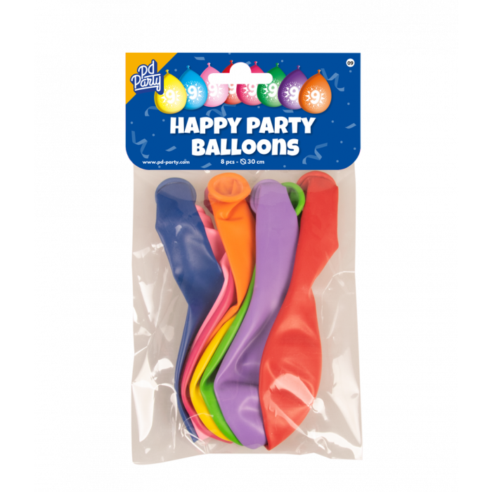 - Party Ballonnen Hoera 9 Jaar- Aantal: 8 stuks per verpakking (kleurenmix)- Diameter:± 30cm - Geschikt voor: Lucht (bij gebruik van helium staan de cijfers ondersteboven)- Materiaal: Latex