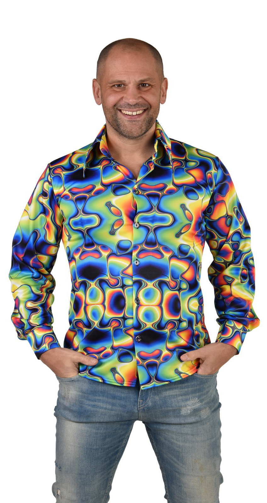 - Party Blouse Groovy Colours Heren- Beschikbare maten: Maat S/M, L/XL en 2XL/3XL- Materiaal: 100% Polyester