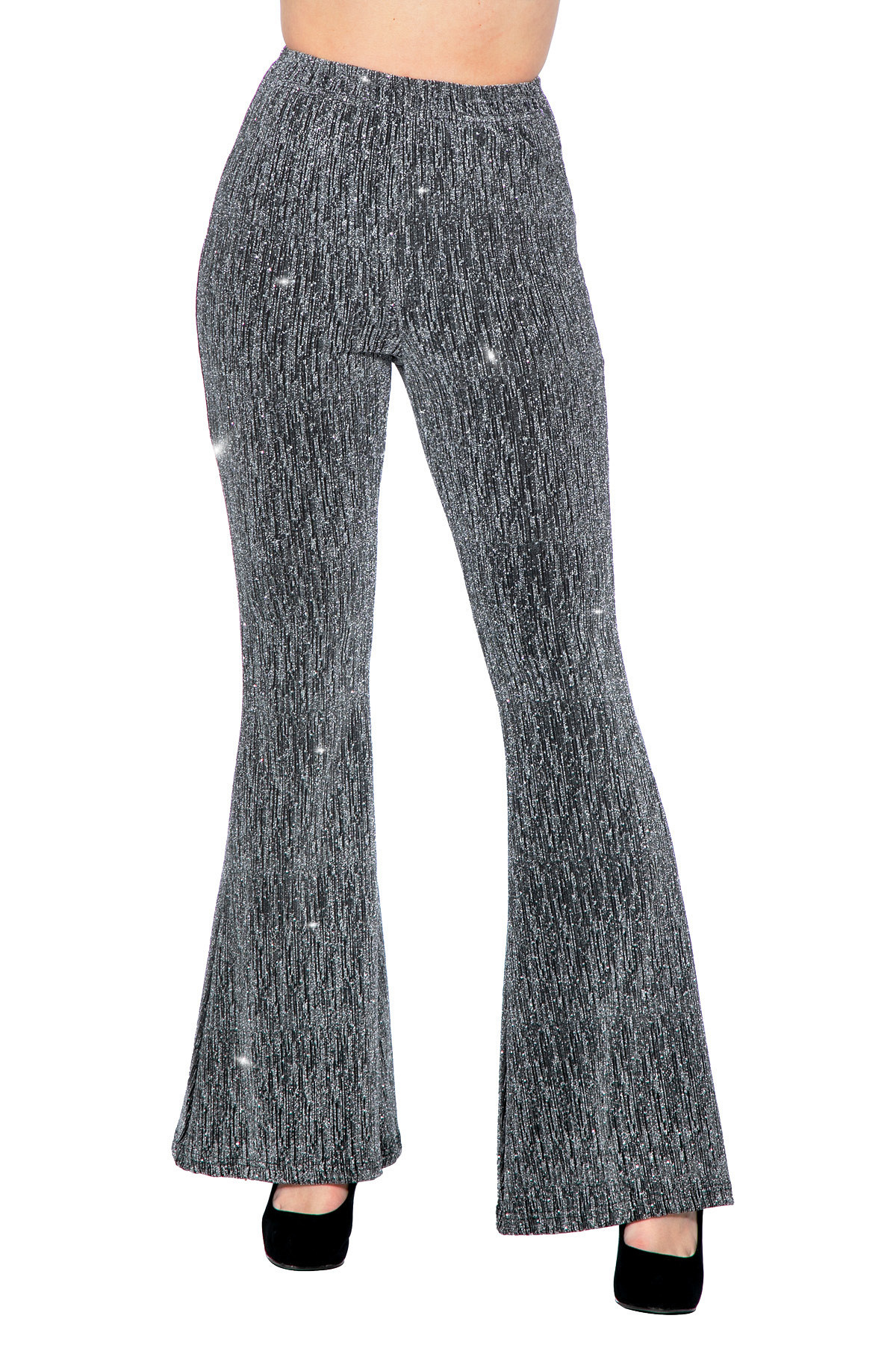 -Party Glitter Broek Flared Zilver-Materiaal 100% polyester-Voorzien van comfortabele stretch stof