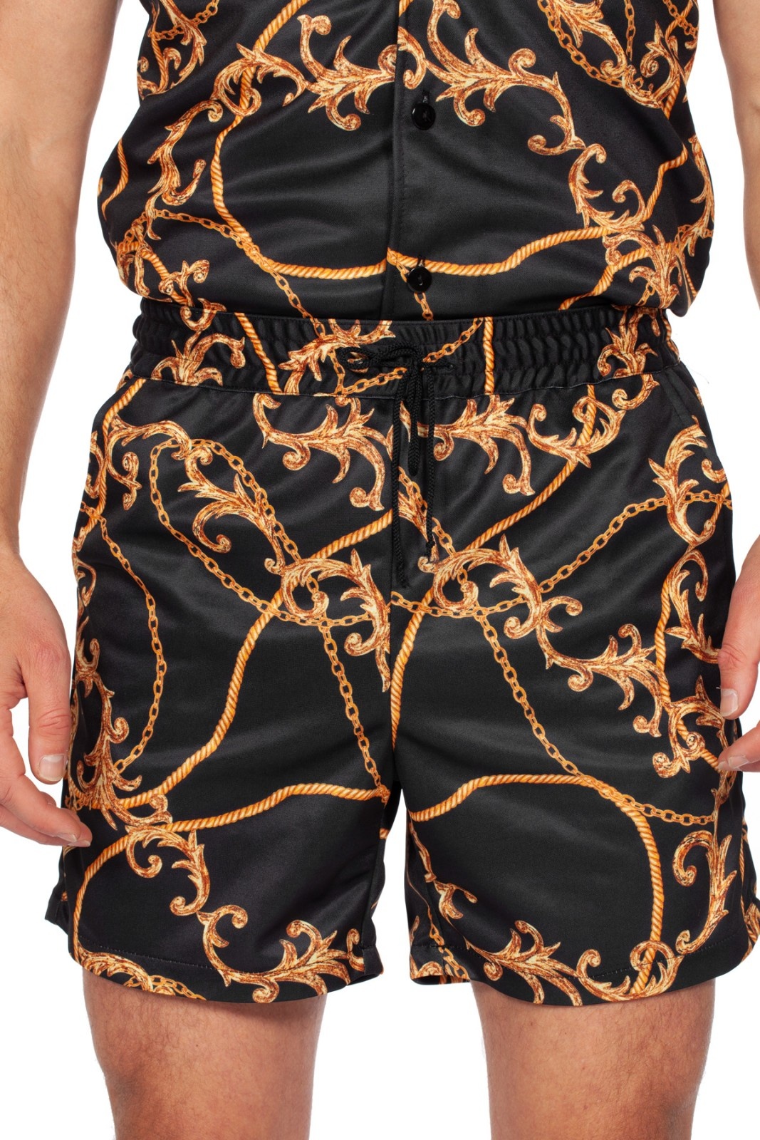 - Bestaande uit: de blouse met een zwart goud designer print en een bijpassende short.