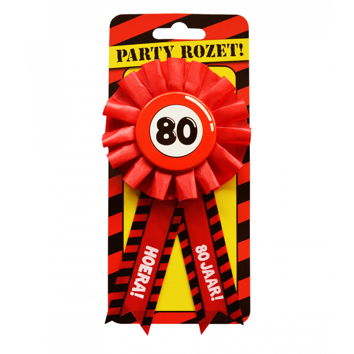 - Party Rozet Rood 80 Jaar- Lengte: ± 15cm- Materiaal: stof en metaal