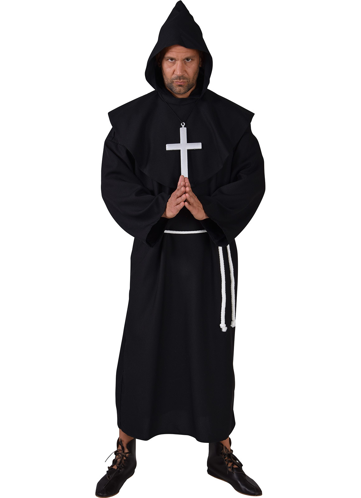 - Pater kostuum elite- Bestaande uit: Gewaad, Schouderkap, Koord- Beschikbare maten: 48, 50/52, 54/56, 58/60