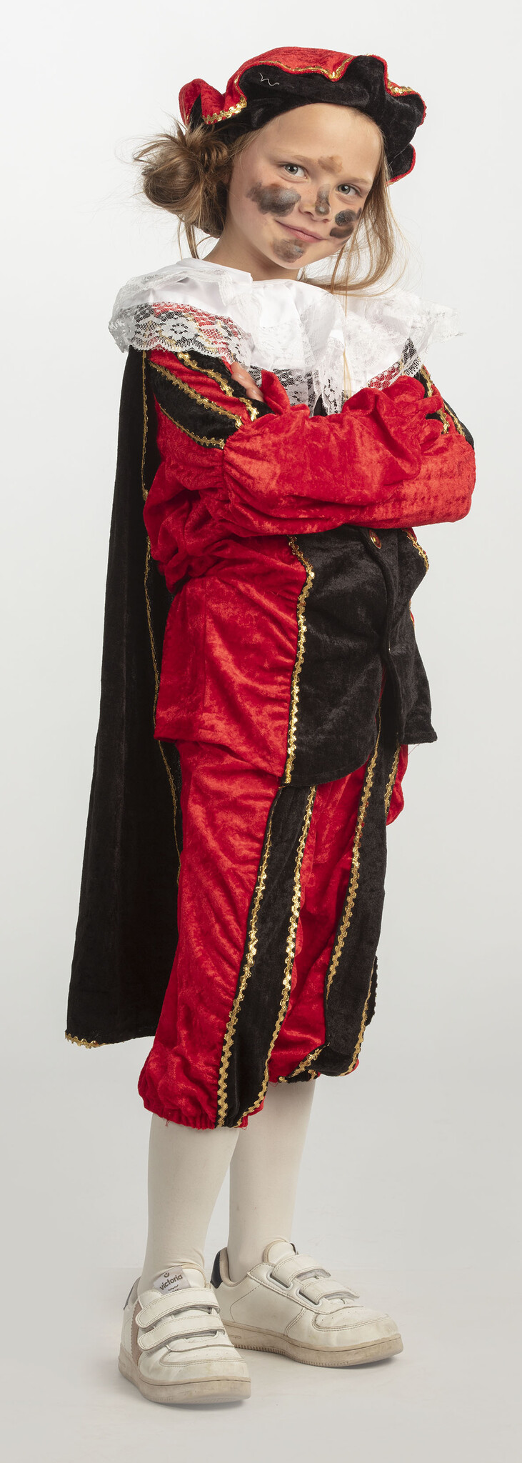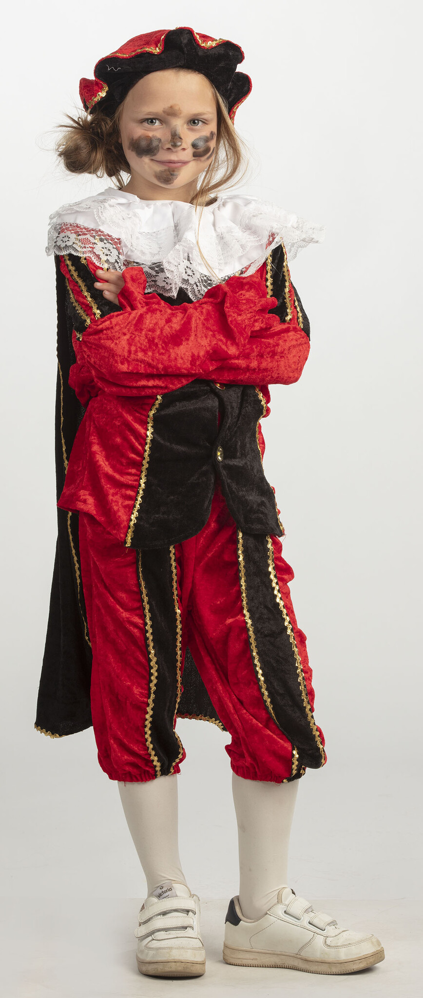 - Bestaande uit: Een jasje met cape, broek, baret en kraag