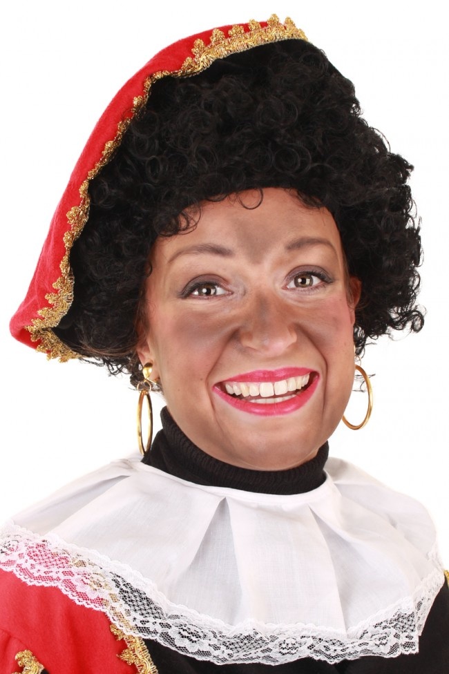 - Pietenpruik Krul Lucía Zwart Verstelbaar- Met verstelbare kap- Geschikt voor volwassenen- Exclusief baret