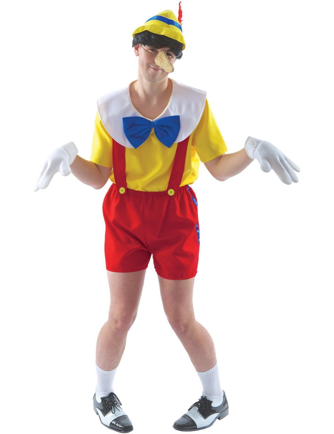 - Pinokkio kostuum man - Bestaande uit: Shirt met kraag en strik, broek met bretels, hoed met haar, handschoenen en neus - Shirt is voorzien van klittenband op de rug - Broek is voorzien van 2 knopen op de voorkant van de broek waar de bretels aan vastgemaakt kunnen worden - Maten: M/L en XL