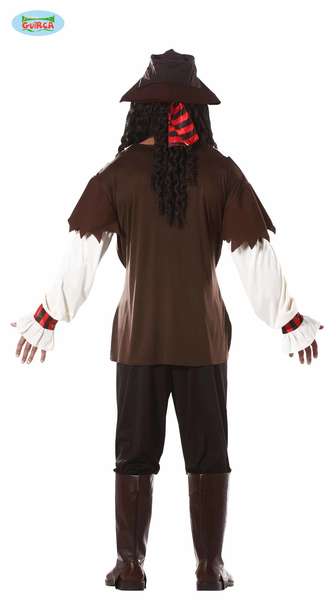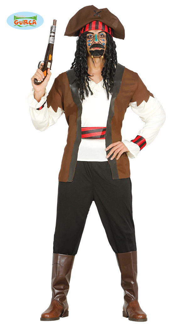 - Piraten Kostuum Zeven Zeeën Heren- Bestaande uit: Shirt, vest, riem, broek, bootcovers, hoed en hoofdband- Beschikbare maten: M, L en XL- Materiaal: 100% PolyesterExclusief accessoires!