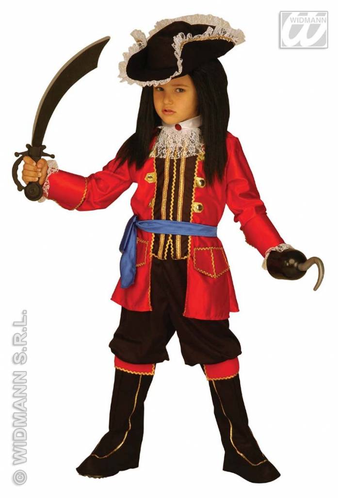Piratenkapitein kindbestaande uit: Jas met Kraag, Broek met schoenhoezen, Riem, Hoed Beschikbare maten: 128, 140, 158