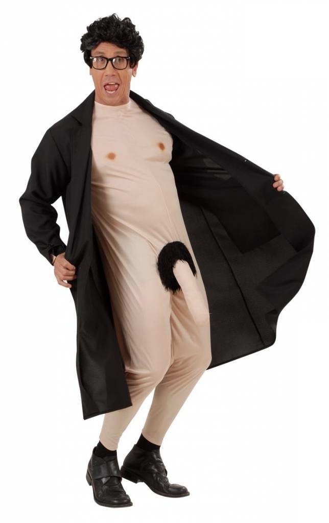 Potloodventer kostuum man bestaande uit: sexy jumpsuit en lange jas