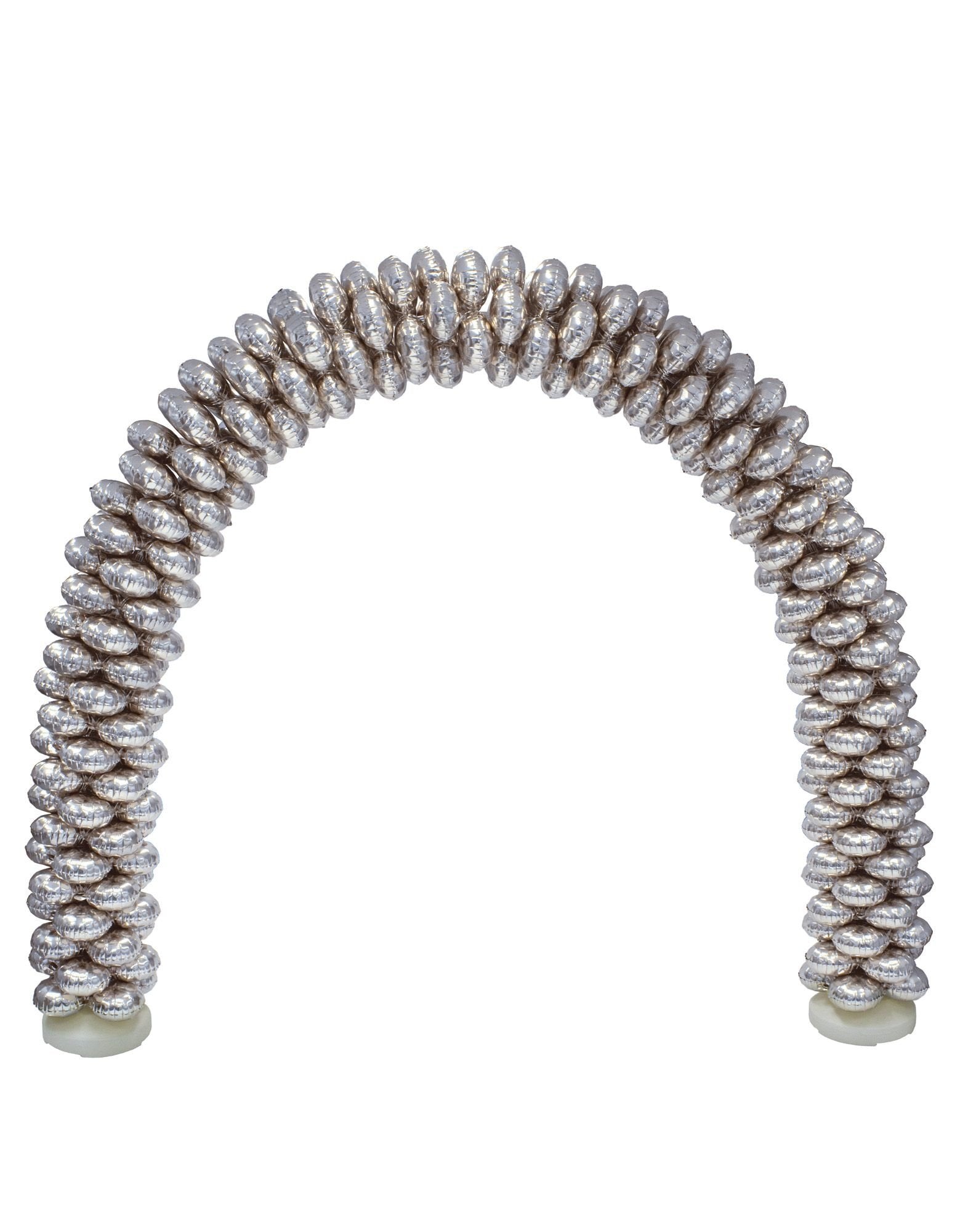 - Ballonnenboog Met Folieballonnen Rond Zilver - Afmetingen boog: ± 220 cm hoog en ± 300 cm breed - Voorzien van 70 folieballonnen (voldoende voor de gehele boog), 1 ballon bestaat uit vier rondjes die aan elkaar vastzitten - Diameter van een ballon is ± 42,5 cm - De folieballonnen worden leeg geleverd. Deze ballonnen zijn voorzien van een ventiel en kunnen met lucht of helium gevuld worden. Opblazen met lucht kan middels een rietje. Deze is niet inbegrepen.