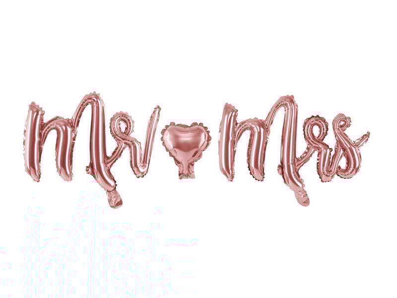 - Folieballon Mr & Mrs Rosé Goud - Bestaande uit drie losse ballonnen - Afmetingen: Mr - 62.5 x 31.5cm, Mrs - 62.5 x 31.5cm, Heart - 25cm - Inhoud: Leeg (standaard) - Geschikt voor: lucht - Materiaal: folie