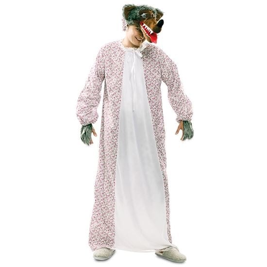 Bestaat uit: jurk, slaapmuts met wolvenkop en handschoenen