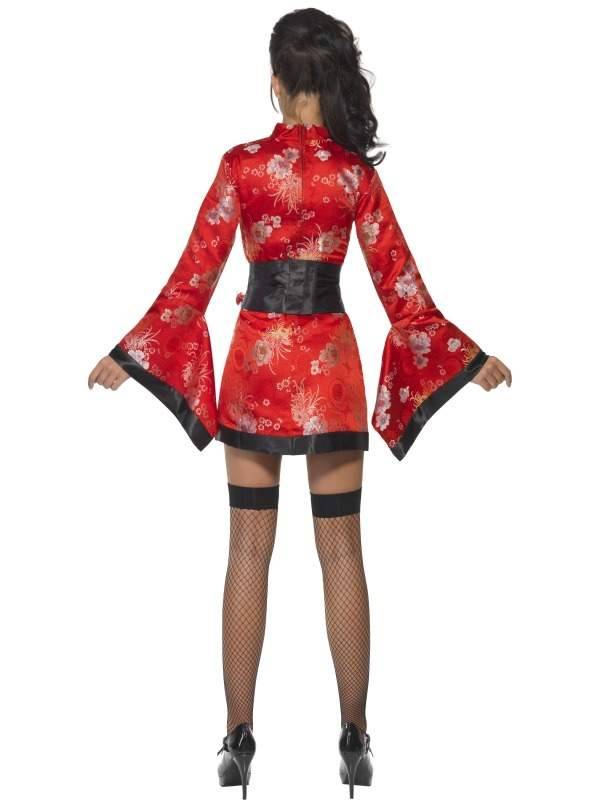 Wil je je vrienden op ludieke wijze van een drankje voorzien? Kies dan voor deze outfit met een riem met borrelglashouders en iedereen zal versteld staan! Maak je Geisha look compleet met een waaier, nepwimpers en een pruik. Je zal er uitzien als een Oosterse schone die, mede door de drankjes, veel aandacht krijgt!