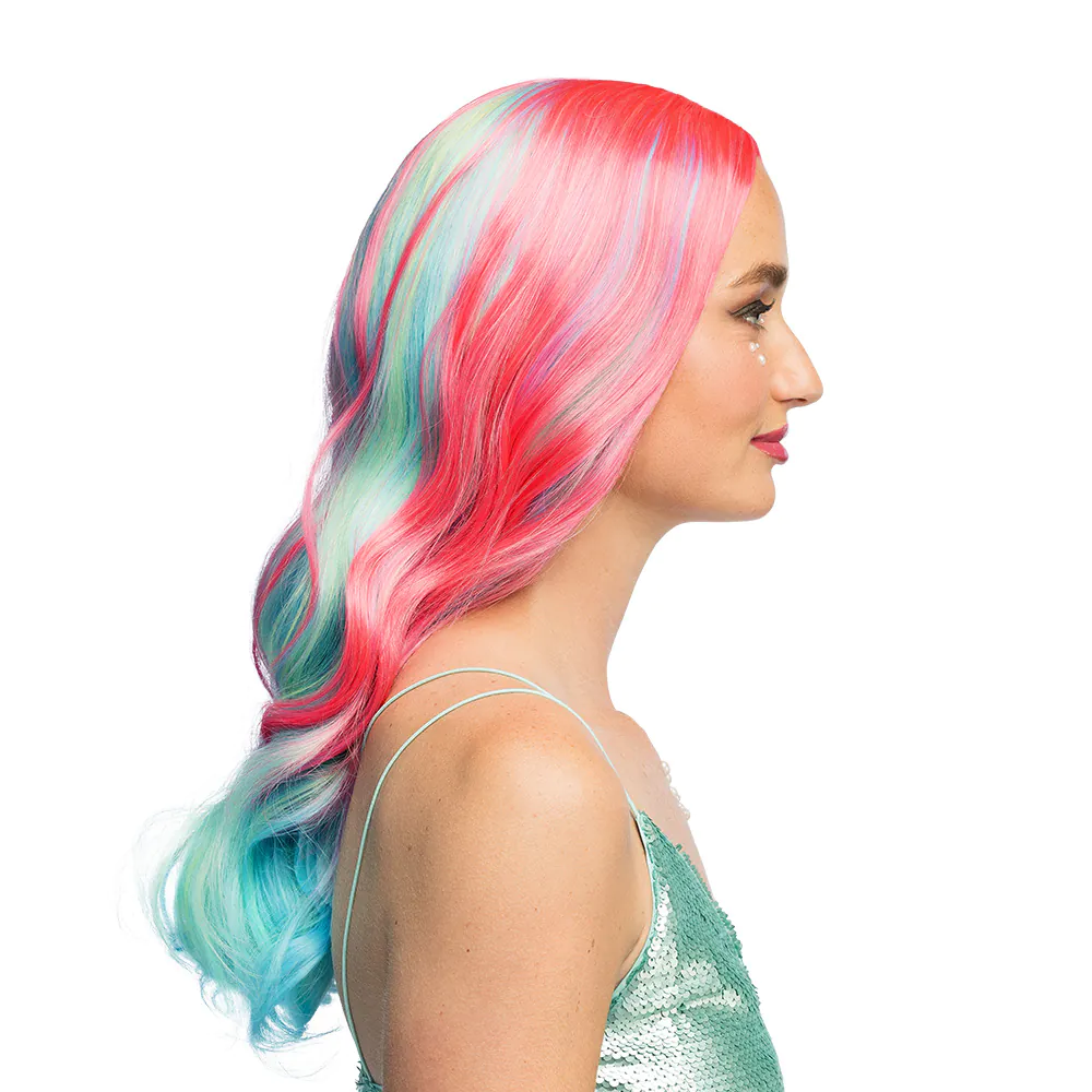 Pruik Nixie UV FantasySteel de show met deze kleurrijke fantasy pruik! De roze en blauwe plukken brengen sprookjesachtige vibes naar elk themafeest of cosplay evenement. Een echte blikvanger!