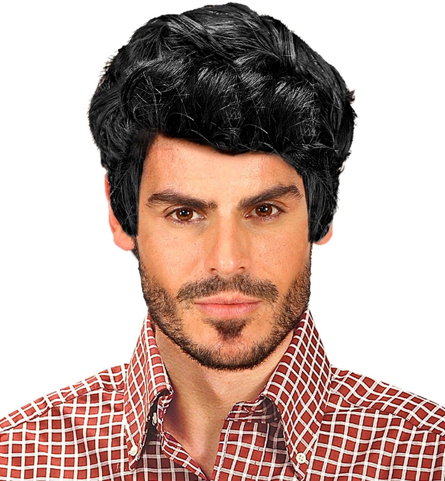 - Pruik Rick Zwart Kort Heren- Geschikt voor: Volwassenen - Materiaal: Polyester