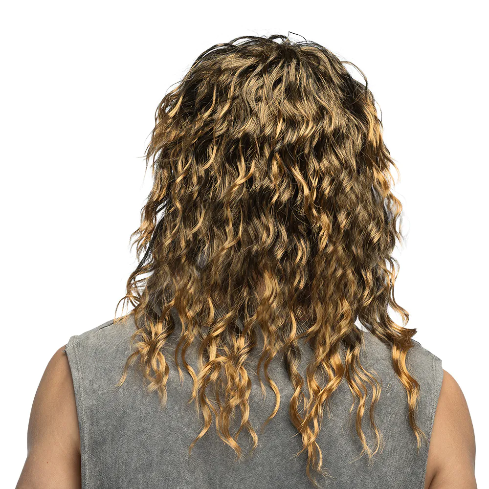 Ga helemaal terug naar de jaren '80 met deze blonde rocksterpruik! De lange, warrige krullen en donkere accenten brengen de ultieme rock-'n-roll vibe naar je outfit. De perfecte pruik voor een themafeest, foute party of carnaval.