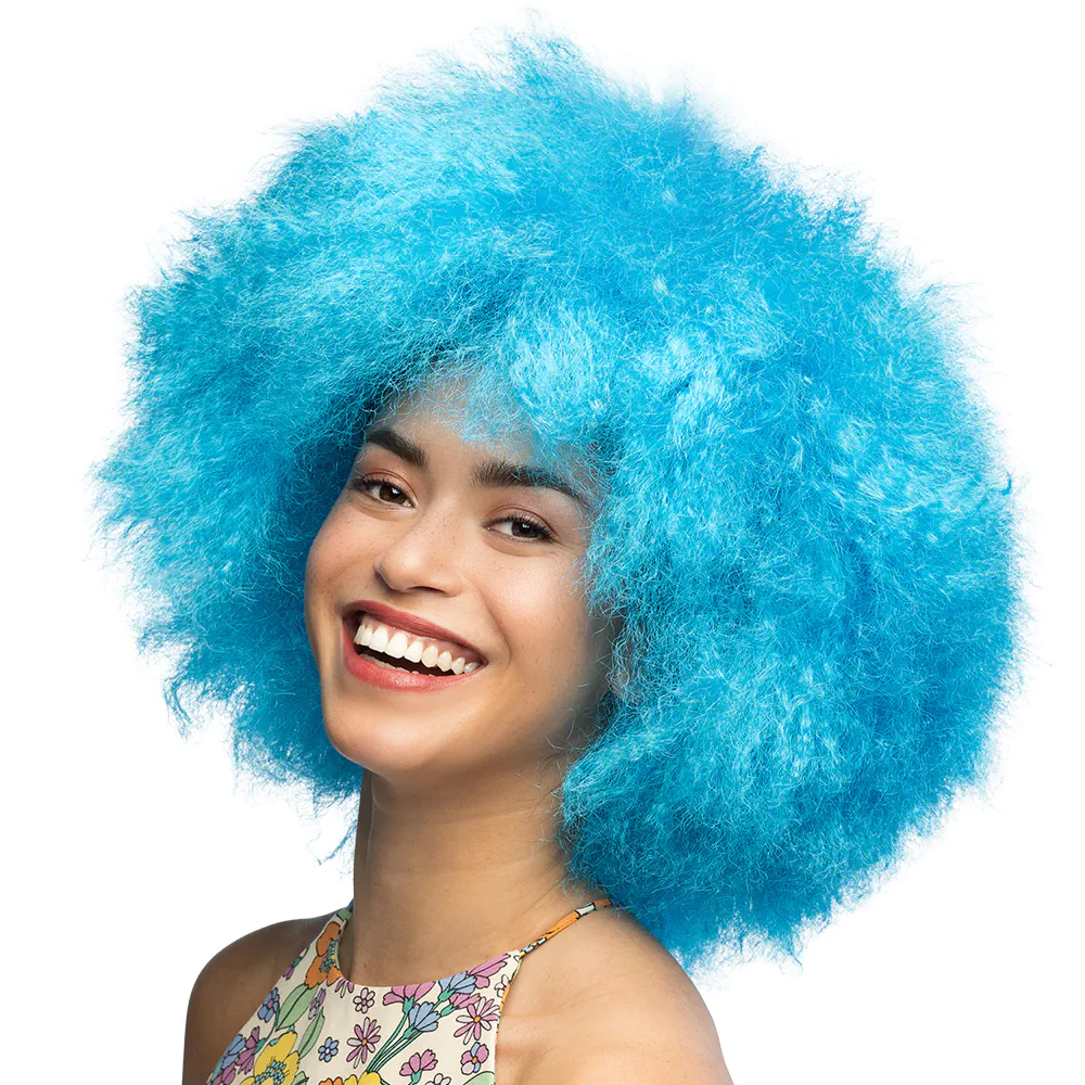 Ga voor een retro look met deze opvallende neonblauwe pruik! Perfect voor een 70s themafeest, foute party of carnaval. Maar ook wanneer je verkleed gaat als clown is deze pruik een mooie toevoeging op je outfit. Het brengt gegarandeerd een lach op ieders gezicht!