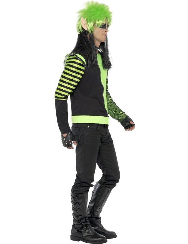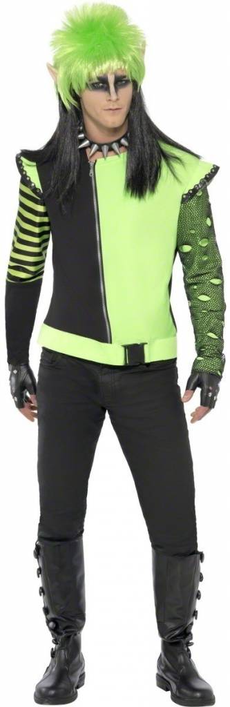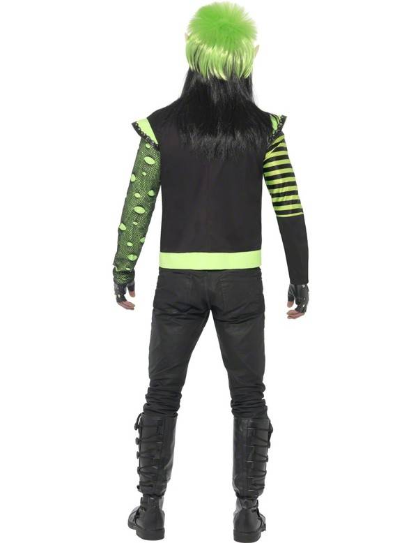 -Punk Ivy Elf kostuum bestaande uit: groen/zwarte jas met padded schouderstukken en verschillende applicaties