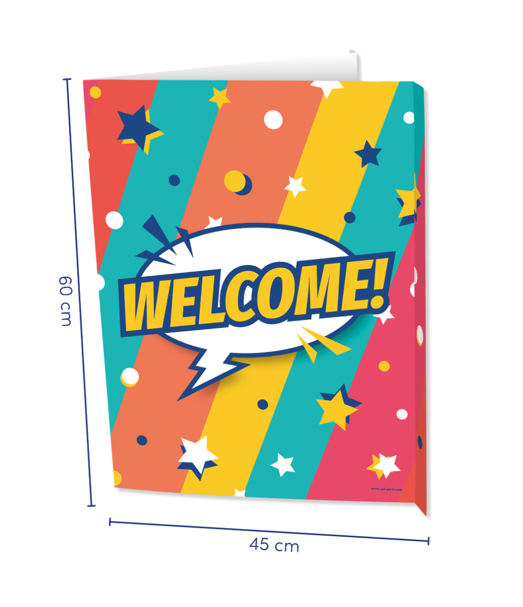 - Raambord 'Welcome' Rainbow- Materiaal: Stevig Karton met een plastic laagje- Afmeting: 60x45cm- Inclusief plakstrip