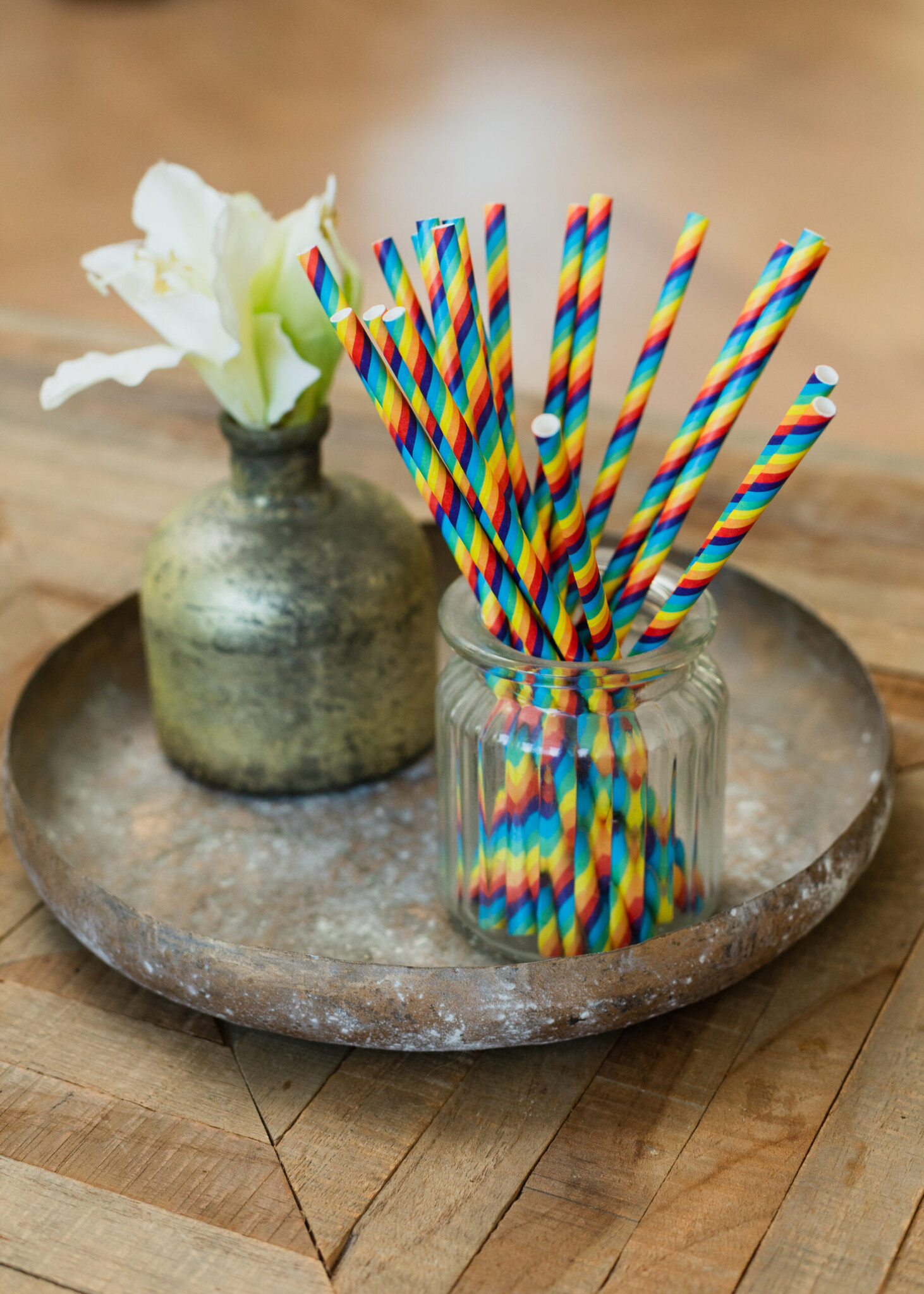 - Regenboog Rietjes- Inhoud: 20 Rietjes- Materiaal: Stevig Papier