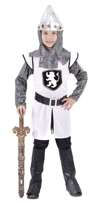 Ridder Kostuum luxe Sir Olivier: het kostuum is inclusief tuniek, broek, riem, kap en beenkappen. Het kostuum is gemaakt van 90% polyester en is brandvertragend. Exclusief zwaard.