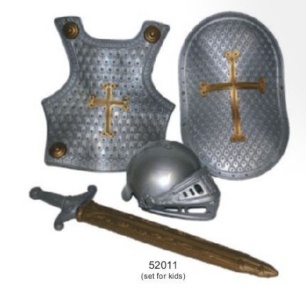 Leuk setje. Past goed bij mijn zoontje van 6. Draagt maat 134 en ruim zat. Hij is er blij mee mijn eigen kleine ridder!